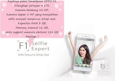 Selfie Expert terbaik, ya, tentunya OPPO Cameraphone F1.